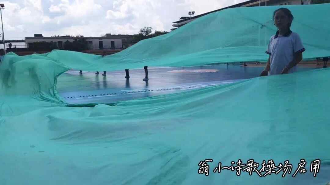 下午3点前,我们到达翁小。整个翁小,已经沉浸在一片喜庆中。孩子们擎着轻纱,站在操场上。马上,翁城诗歌校园就要揭幕。揭幕典礼非常简单。孩子们站在两栋大楼的走道,欢呼、尖叫、鼓掌。主持人讲什么,不知道,只听到掌声、欢呼。操场上的孩子们,把轻纱缓举,收起,置于一旁。就这样,刹那间,诗歌花园惊艳亮相,横空出世。
