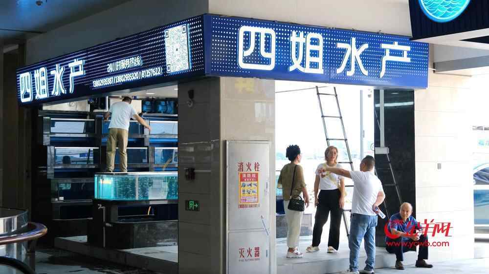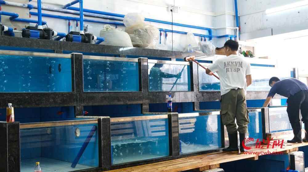 在“新市场”开业在即,陈丽娟到新档口筹备开业事宜,她档口的鱼池等设备正在做调试,工人在清洗鱼缸外的玻璃。待“新市场”正式开业后,陈丽娟将把“旧市场”的业务逐步转移至“新市场”。