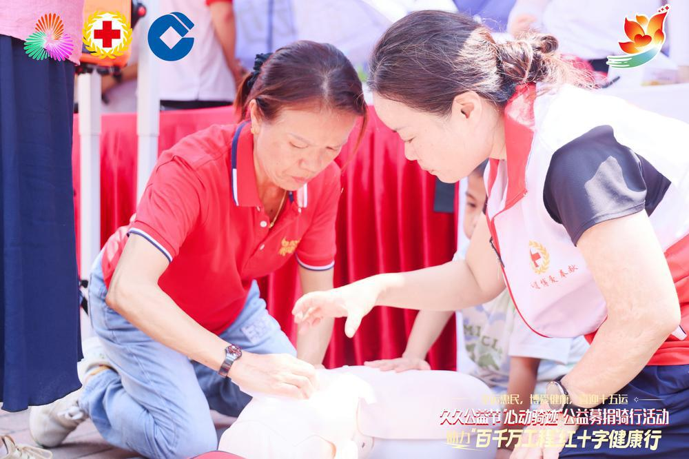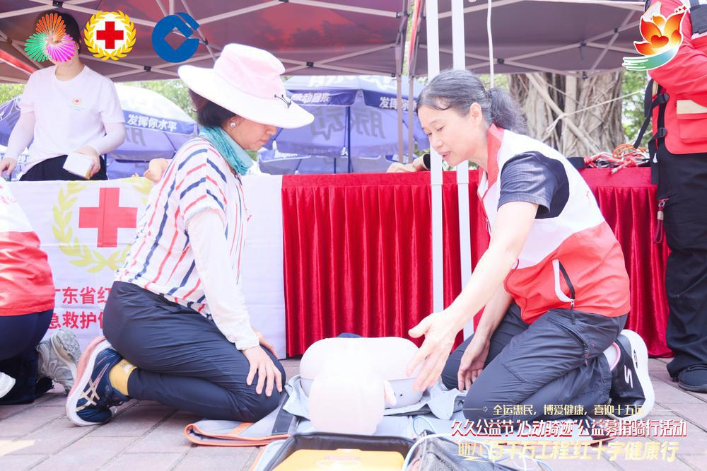 9月6日,“全运惠民、博爱健康、喜迎十五运”久久公益节“心动骑迹”公益募捐骑行暨“百千万工程”红十字健康行活动在广州番禺大夫山志愿服务主题公园举行,300多名骑行爱好者、50多名医护人员、500多名志愿者以及市民参与其中,在运动中做公益、在互动中掌握救护技能。