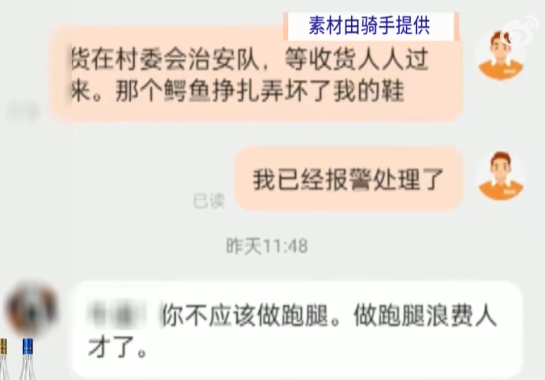涉事鳄鱼批发部老板则回应称,自己从未说过鳄鱼是死的,一般他们发货都只是用绳子绑住鳄鱼嘴巴,单条用尼龙袋包装,多条才用木箱,几乎每天都会通过跑腿配送,从未出过问题。