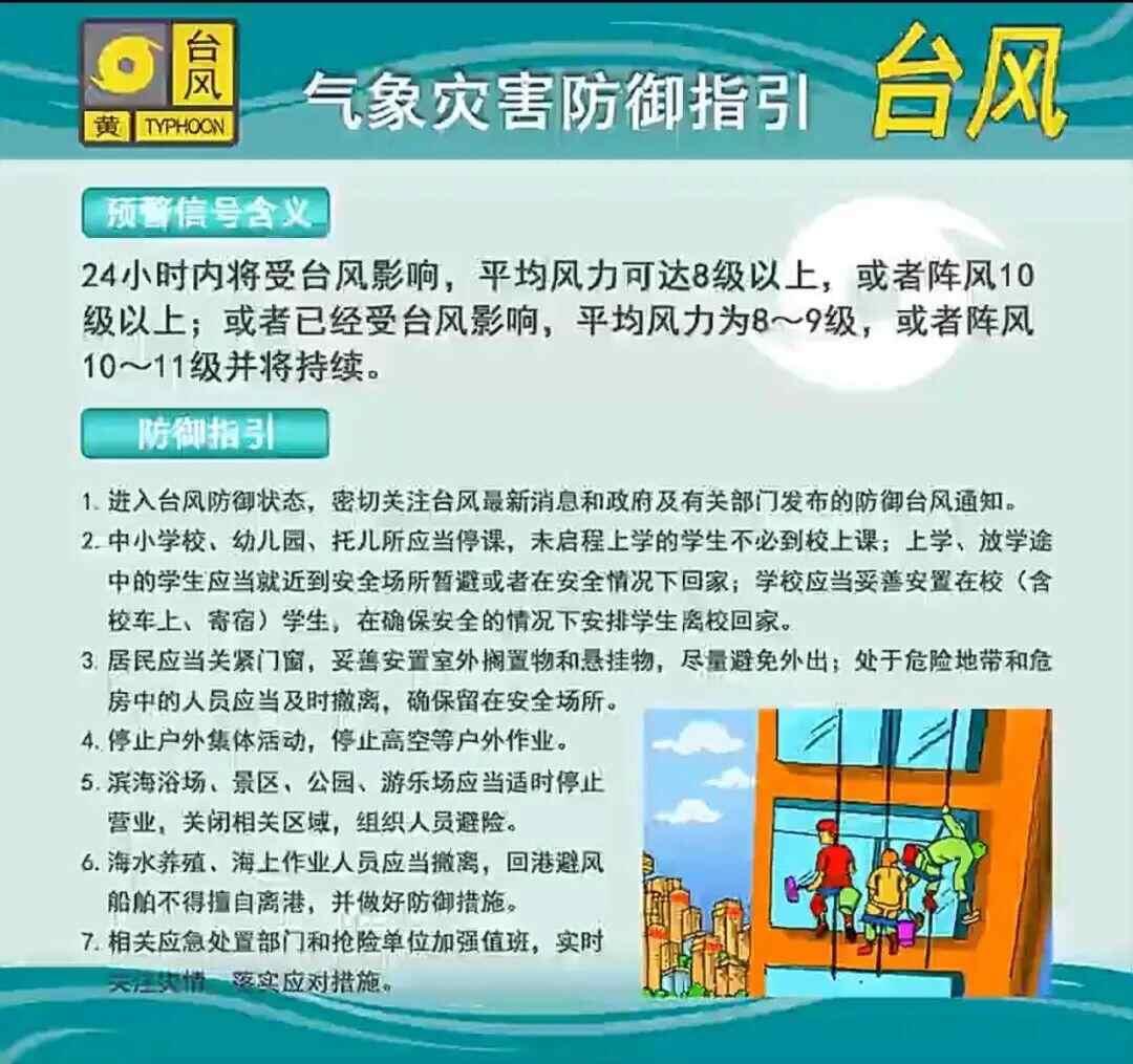 台风黄色预警信号防御指引。广东省气象服务中心制作