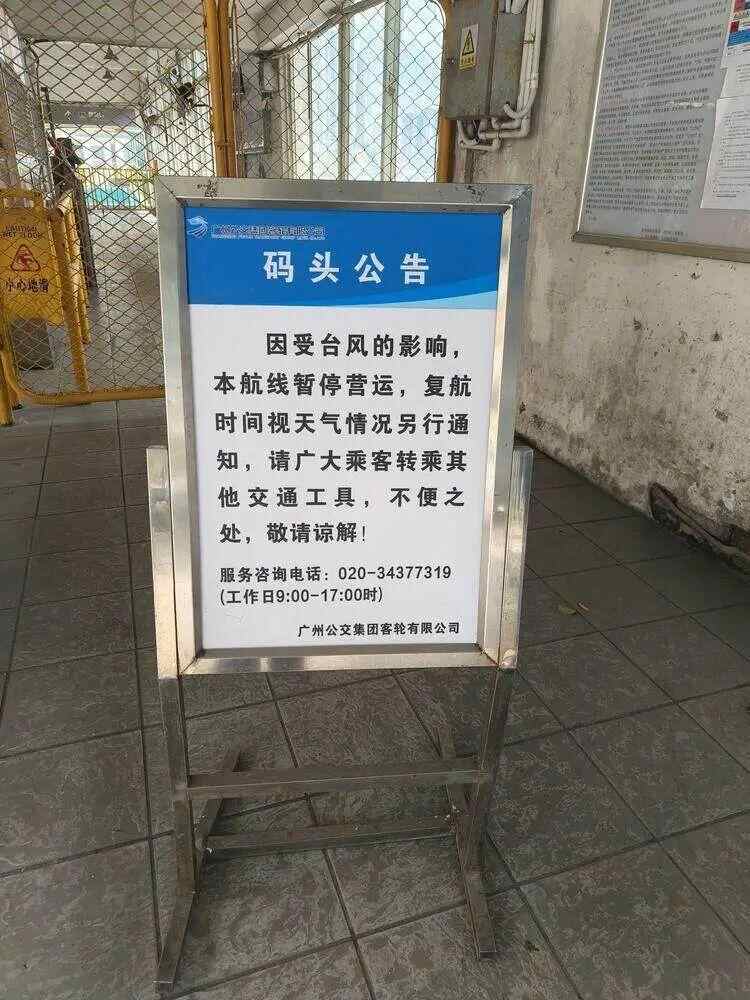 目前,各码头出入口已摆放公告牌,提示乘客航线暂停营运。具体恢复时间,视台风后续影响情况再通知。详情请咨询码头工作人员。