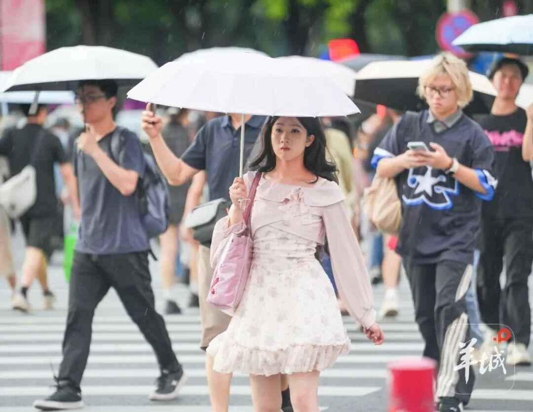 9月7日傍晚,受“塔巴”影响,广州市区出现阵雨,市民撑伞出行