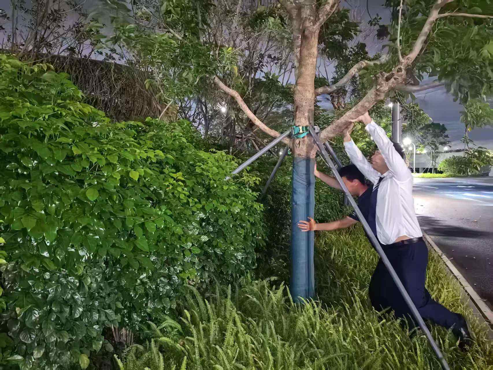 同时,该中心还在各主要路口设置了警示护栏和围蔽铁门,防止人员误入危险区域。机电部门对应急水泵进行了全面测试,确保排水设备处于良好状态;通过IOC智能化系统与现场巡查相结合的方式,对排水管网进行了严密监控,预防跑冒滴漏现象。园林绿化部门对园区树木支撑牢固性进行了加固检查,工程部门则对室外电箱进行了防水防漏电专项排查。