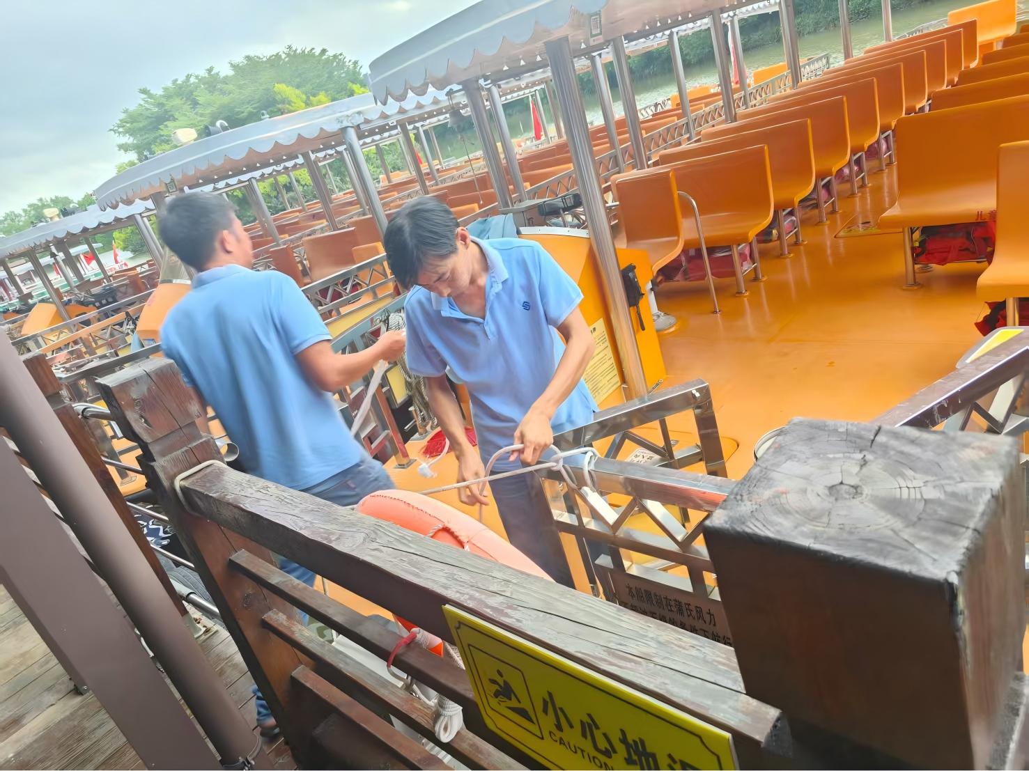 此外,位于南沙区的湿地景区也采取了针对性防护措施。景区管理部门已对停泊在码头的游船进行了缆绳固定和加固处理,防止船舶因风浪撞击受损。