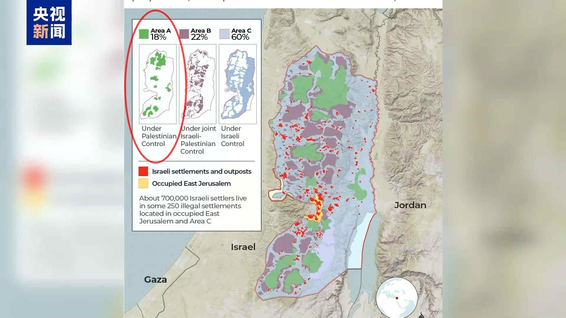 20世纪90年代,以色列与巴勒斯坦解放组织(巴解组织)签署协议,将约旦河西岸划分为A、B、C三个区域。