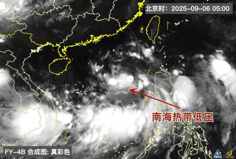 根据中央气象台观测,南海热带低压6日5时中心位于广东省茂名市电白县东偏南约800公里的海面上(北纬17.8度、东经117.6度),中心附近最大风力7级(15米/秒),中心最低气压为1002百帕。