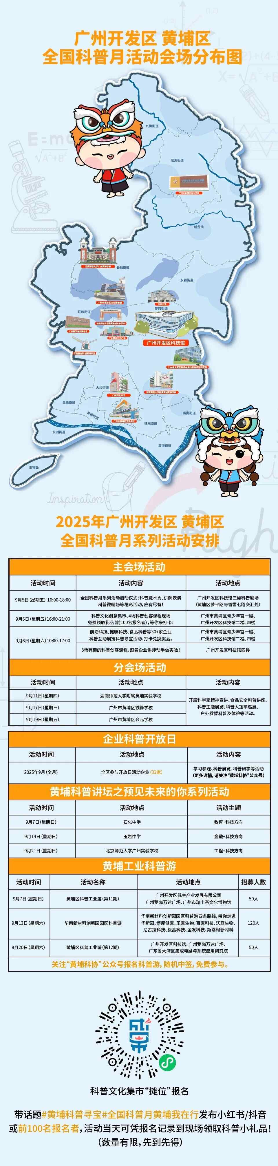 今年9月是《中华人民共和国科学技术普及法》修订颁布后的首个全国科普月。广州开发区、广州市黄埔区全国科普月系列活动即将拉开帷幕。