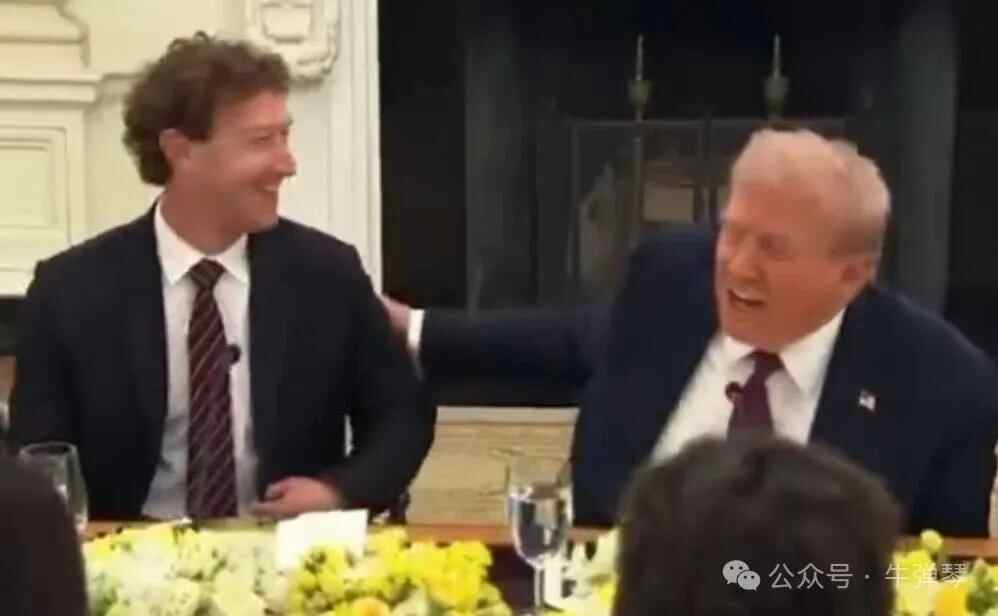 而且,在晚宴上,特朗普和扎克伯格亲密互动,他时常拍拍小扎的后背,那可是马斯克以前的待遇。