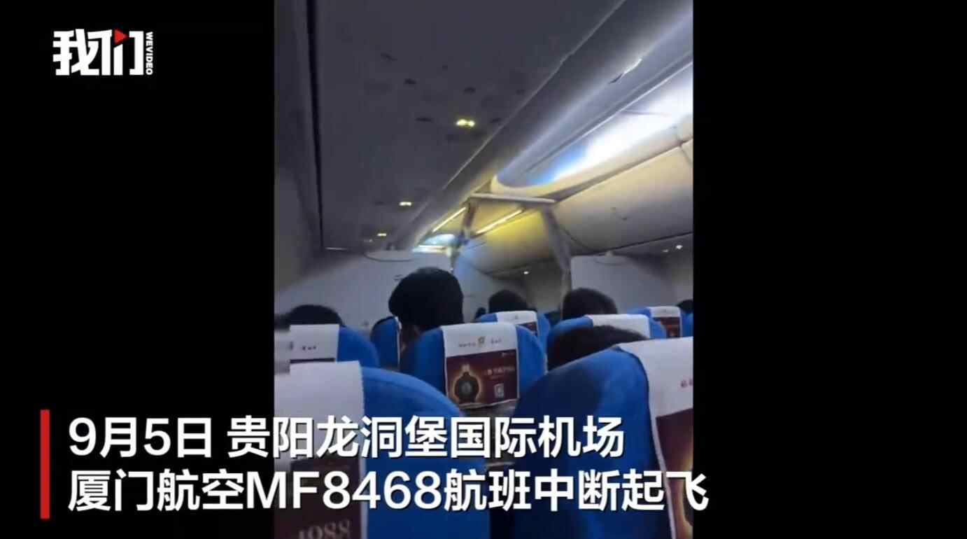 9月5日,贵阳龙洞堡国际机场,厦门航空MF8468航班中断起飞,执行该航班的飞机在跑道上滑行,突然急刹后客舱传出旅客尖叫声,机场采取应急措施,旅客下机后被妥善安置。