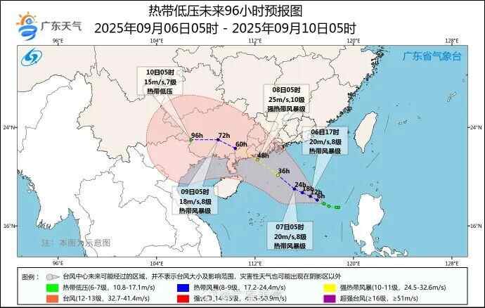 广东省气象台9月6日早晨对南海热带低压的路径和强度预报