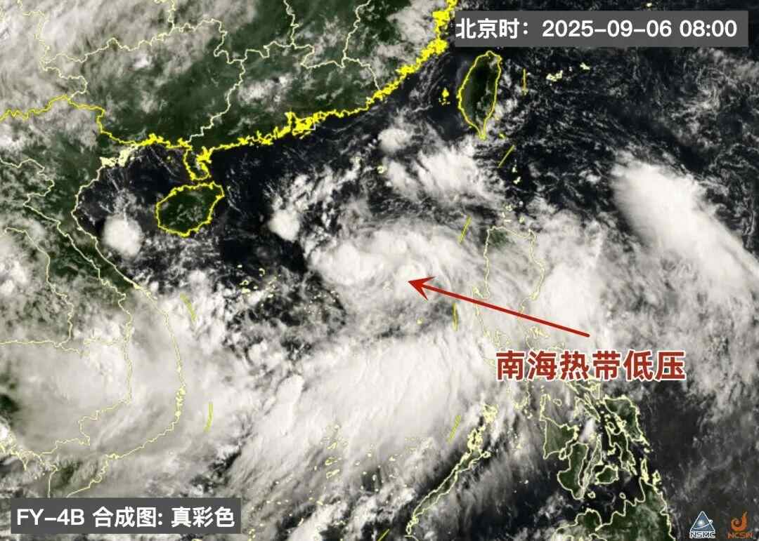 9月6日8时,南海热带低压卫星影像 国家卫星气象中心风云四号卫星天气应用平台截图 梁怿韬作标注