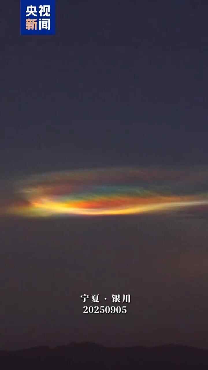 9月5日傍晚,银川很多市民发现,城市上空出现“七彩祥云”。有摄影爱好者拍到的画面展示,一道呈现螺旋上升状态的“七彩祥云”,在暮色渐沉的天空中持续舞动了约40分钟。