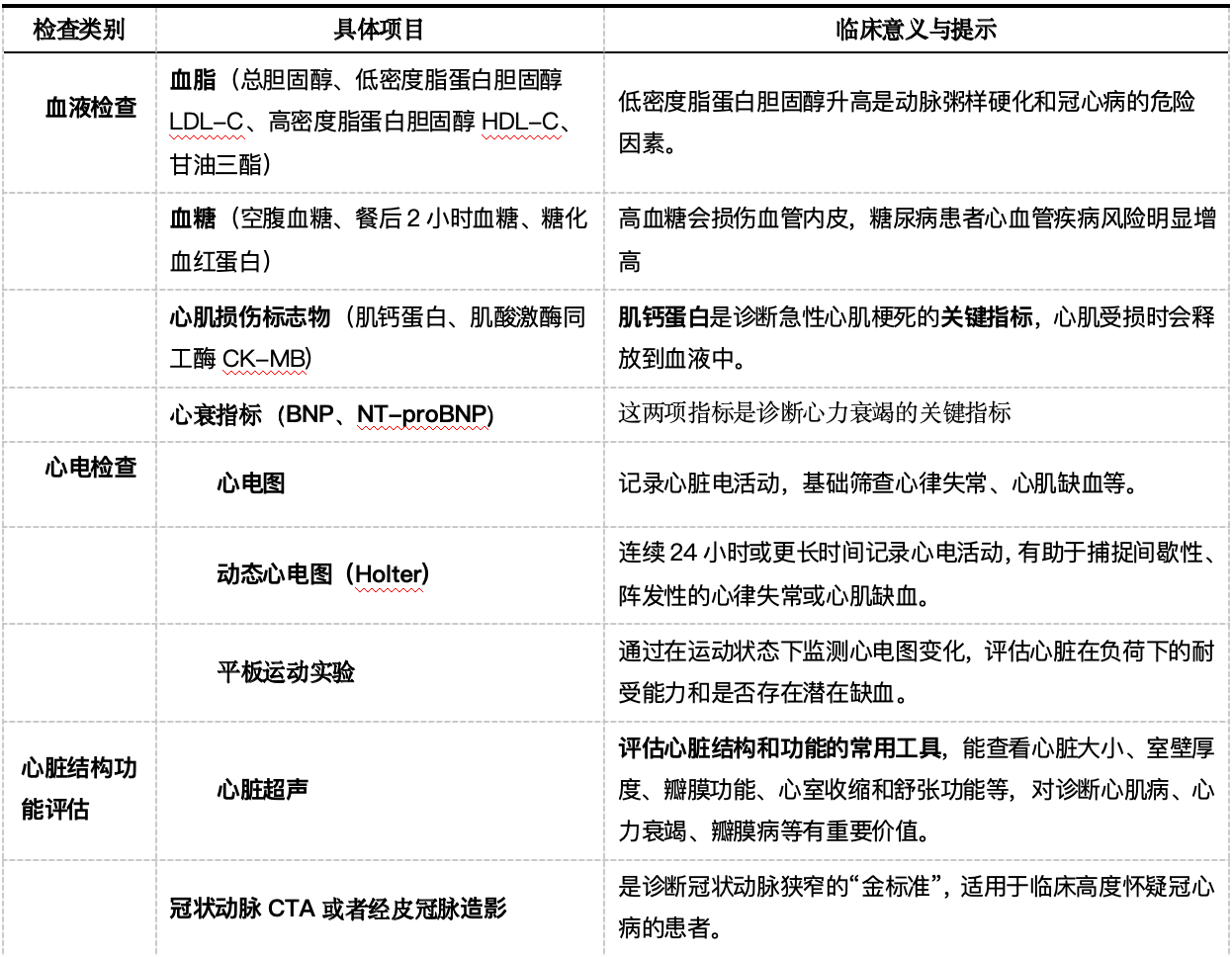 定期体检和了解关键医学指标是评估心脏健康的重要方式。下表列出了一些核心的检查项目及其意义: