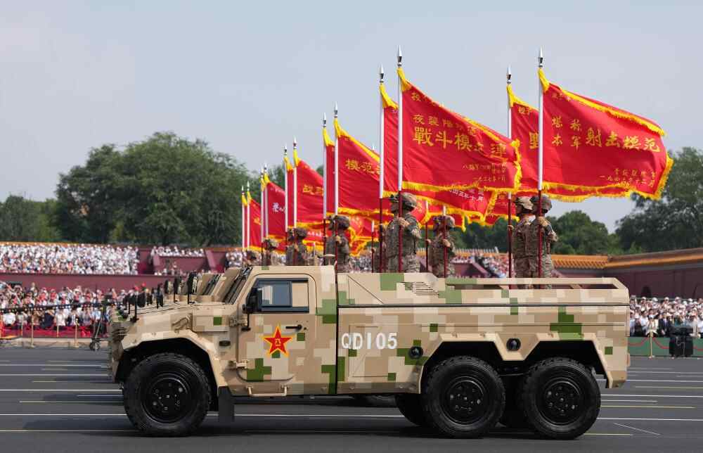 9月3日,纪念中国人民抗日战争暨世界反法西斯战争胜利80周年大会在北京隆重举行。这是战旗方队接受检阅。新华社记者 杨磊 摄