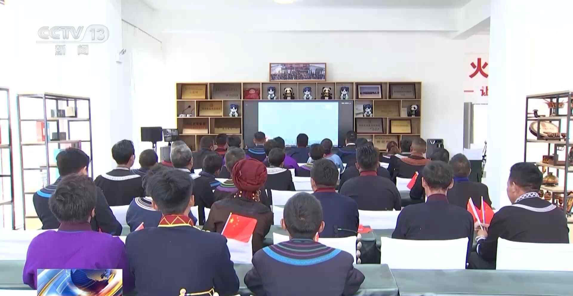 在四川凉山昭觉县火普村,收看大会直播的村民们脸上洋溢着自豪的神情。