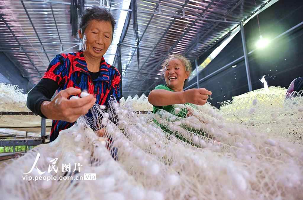 近年来,四川省眉山市仁寿县钟祥镇依托“公司+合作社+农户”模式,规模发展蚕桑产业,通过推广小蚕共育技术,不断做大做强蚕桑产业,促进农民增收、农业增效。潘帅摄(人民图片网)