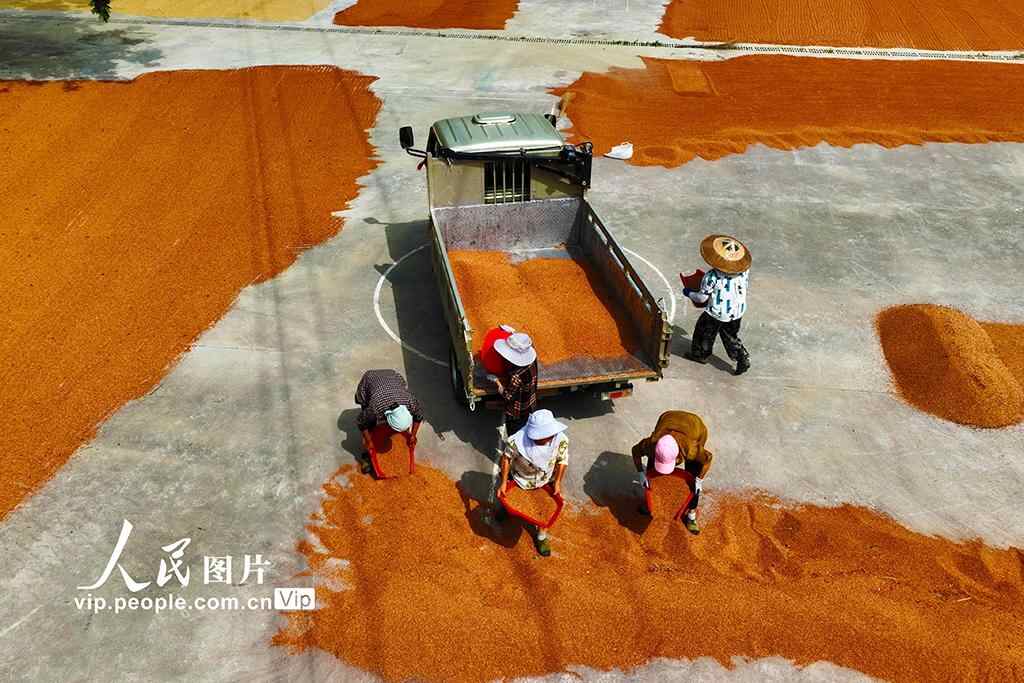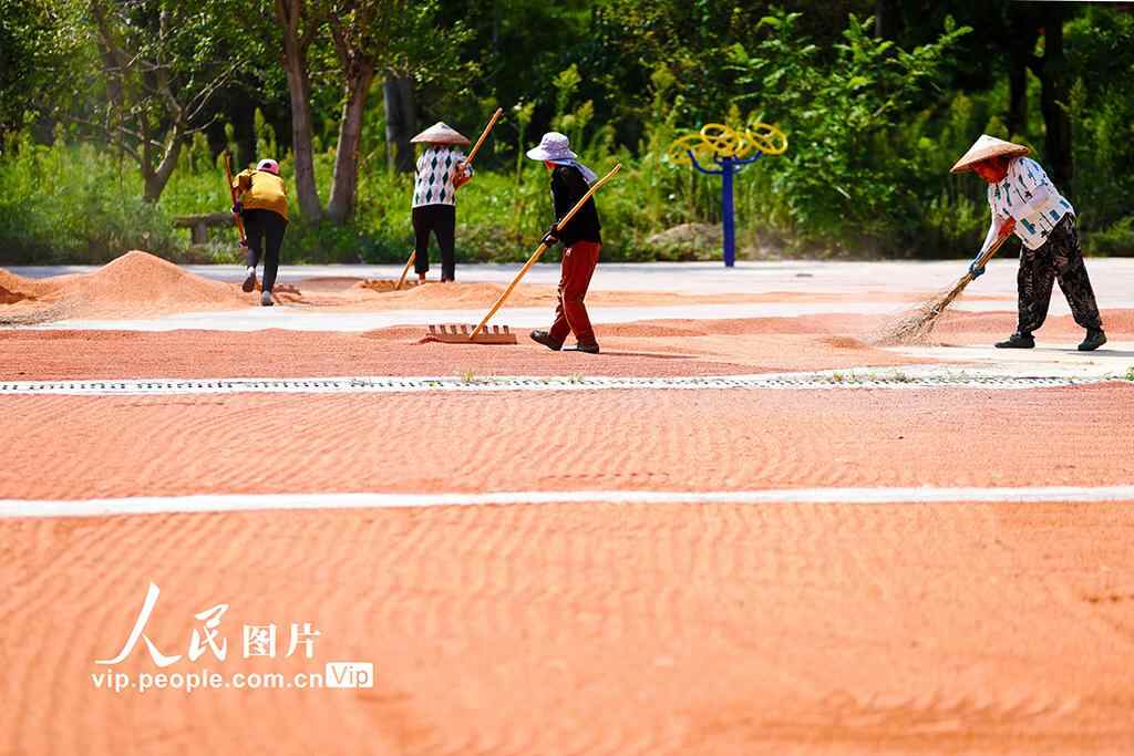 2025年9月4日,村民在重庆市黔江区小南海镇大路社区高粱基地晾晒高粱。杨敏摄(人民图片网)