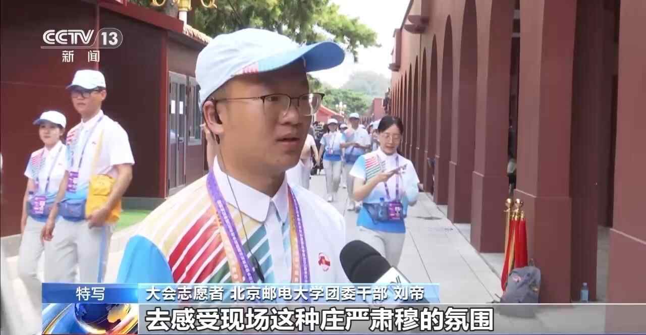 大会志愿者 北京大学法学院2024级硕士研究生 许佳:当时我是一个高呼团结起来、振兴中华的热血青年,而这一次作为志愿者,我从一个参与者变成了一个服务者,希望能够用我专业的态度来服务好观礼人员。每当我能够指引一个观众正确找到他所想要去到的点位,就能够让大会的时钟正确走一秒钟,能够让我感受到我和4000多名志愿者的贡献,能够共同托举整个大会的顺利举办,我觉得是非常荣幸,也希望能够成为一名闪闪发光的螺丝钉。