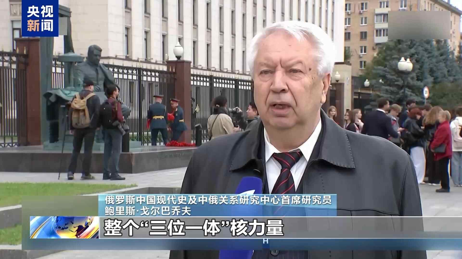俄罗斯中国现代史及中俄关系研究中心首席研究员 鲍里斯·戈尔巴乔夫:中国首次展示了自己的整个“三位一体”核力量,空基导弹、海基导弹以及新的陆基导弹。