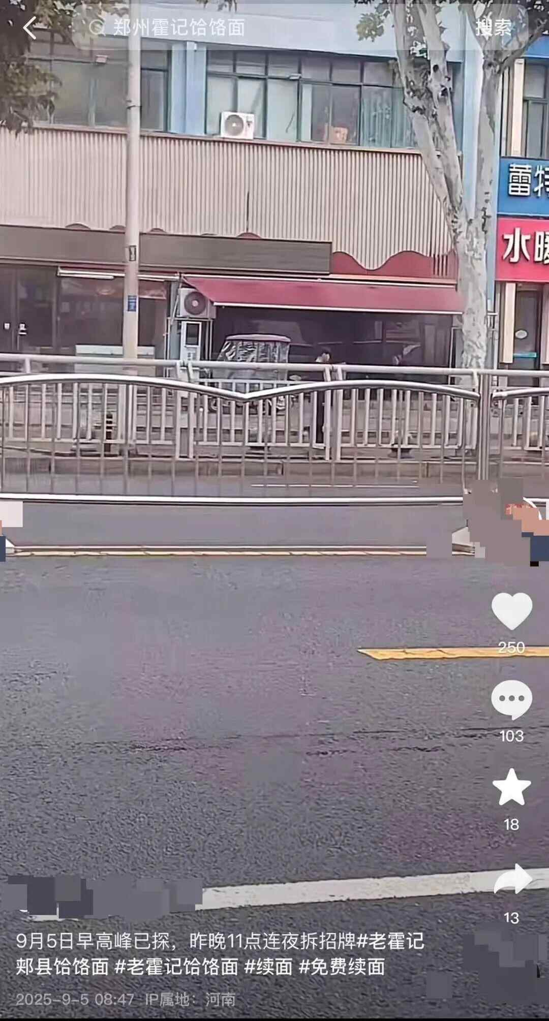 9月5日,多位郑州网友在社交平台发布视频作品,称备受舆论关注的“续面事件”发生地——郑州老霍记郏县饸饹面馆已拆除门店招牌。