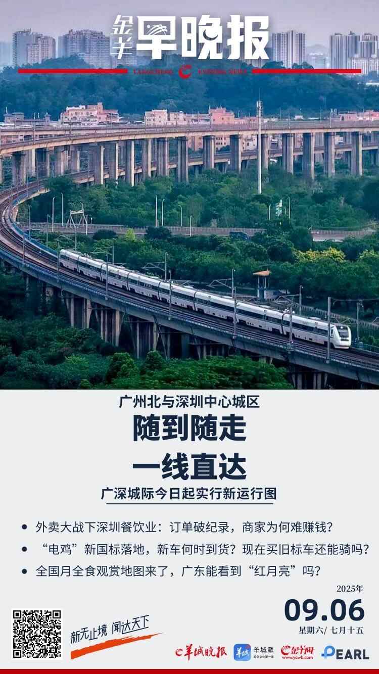 【金羊早晚报】广州北与深圳中心城区“一线直达”,广深城际9月6日起实行新运行图
