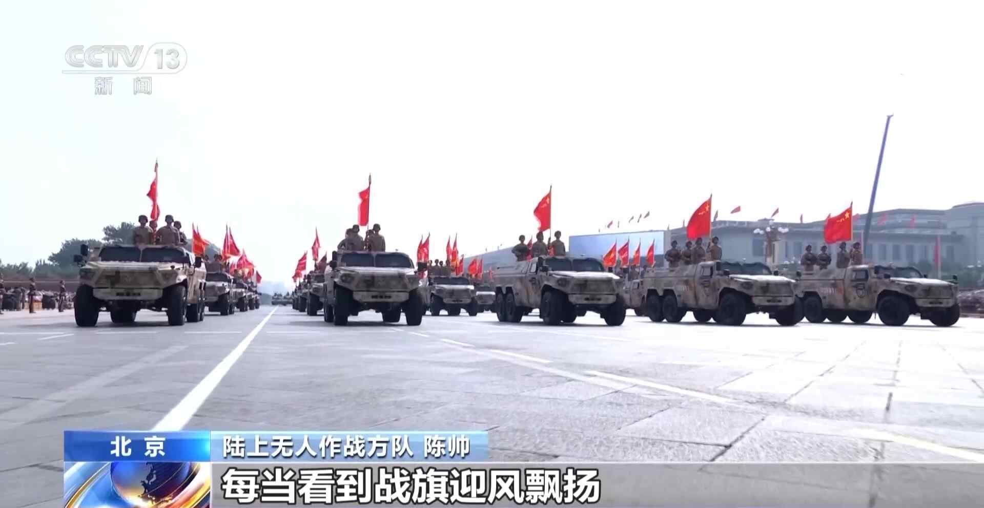 陆上无人作战方队 张雨风:如今,我们拥有了先进的武器装备,更要牢记中华民族一路走来的艰辛,牢记人民军队使命初心,弘扬好抗战伟大精神,把手中先进武器装备转化为部队实际作战能力,聚力打赢实现建军一百年奋斗目标攻坚战。