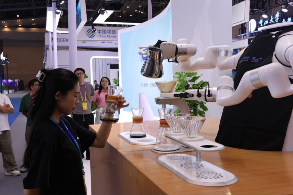 在智能居家展区,一处咖啡柜台前排起了长队,记者穿过人群发现,原来大家正在等待品尝咖啡制作机器人调制的咖啡。“机器人做出的咖啡味道香醇,跟人类咖啡师调制的区别不大,制作效率也很高。”观众郑女士一边品尝着咖啡,一边和机器人合影打卡。