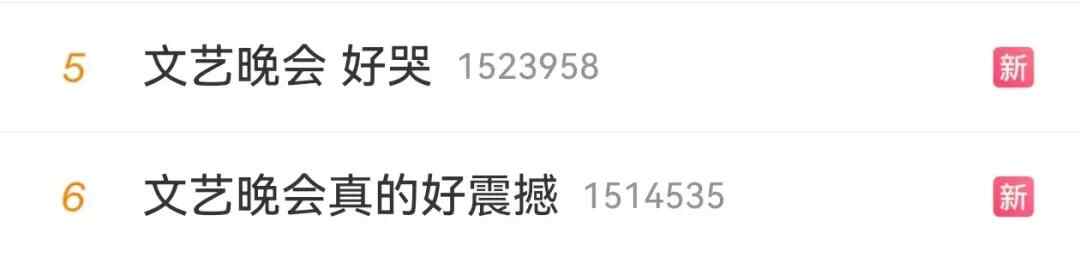 至晚会结束时止,包括“文艺晚会”“文艺晚会 好哭”“文艺晚会真的好震撼”“九三晚会这束光”“刘敏涛给我演哭了”“这是胡先煦吗”“吴越吴樾”“雷佳音和小栋哲”“抗战胜利80周年文艺晚会”“刘昊然台词”“罗晋台词”“文艺晚会节目”“文艺晚会节目单”“文艺晚会看到郭京飞了”“文艺晚会舞蹈殇源自紫金草女孩”等词条登陆热搜。
