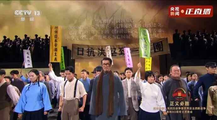 记者发现,“正义必胜文艺晚会”运用了情境诗朗诵、舞剧、音乐剧、话剧等多种表演形式,据悉,这台文艺晚会由80后年轻艺术家担任总导演,大批90后年轻编导参与制作,00后演员在参演人员中比例超50%。