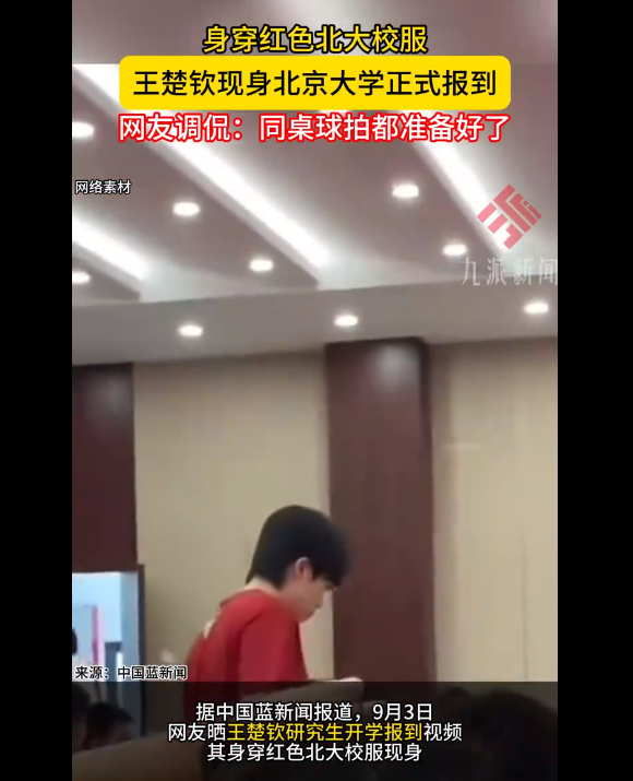 9月1日,北京大学迎来了2025级新生报到日,乒乓球运动员王楚钦身穿红色校服,现身正式报到。