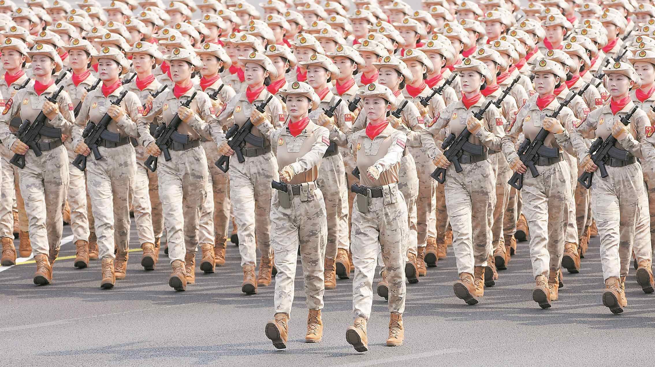 民兵方队全部由女民兵组成。这是民兵首次亮相以纪念抗战胜利为主题的阅兵活动。