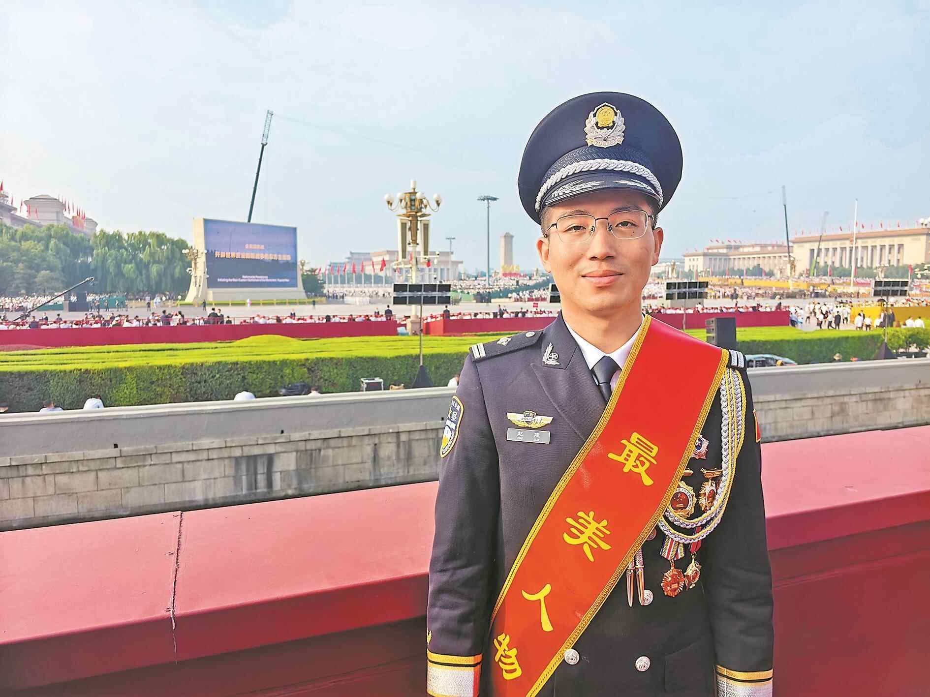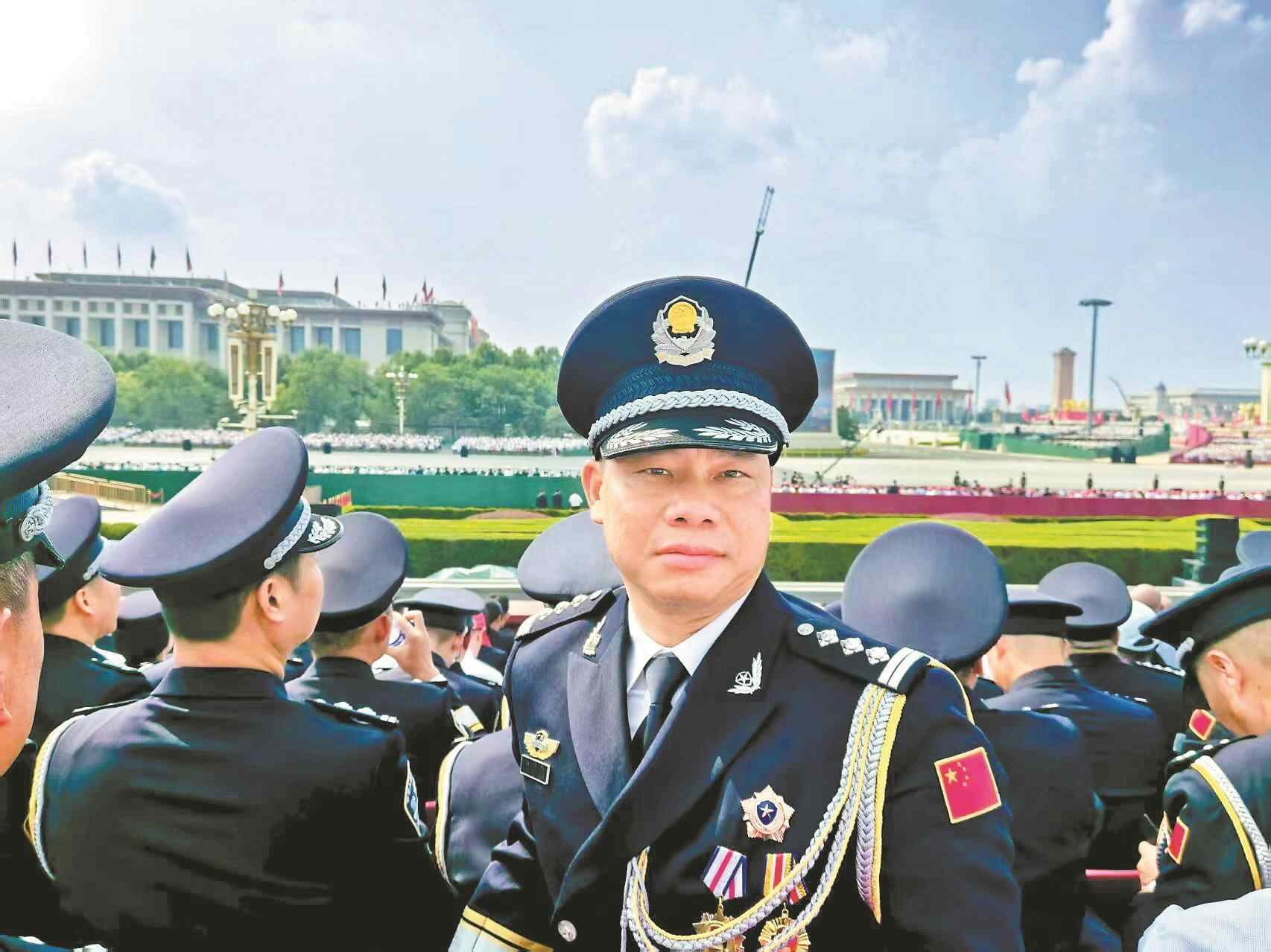 一身警服、一身勋章。九三阅兵现场,广东省佛山市公安局南海分局副局长林伟光受邀观礼。