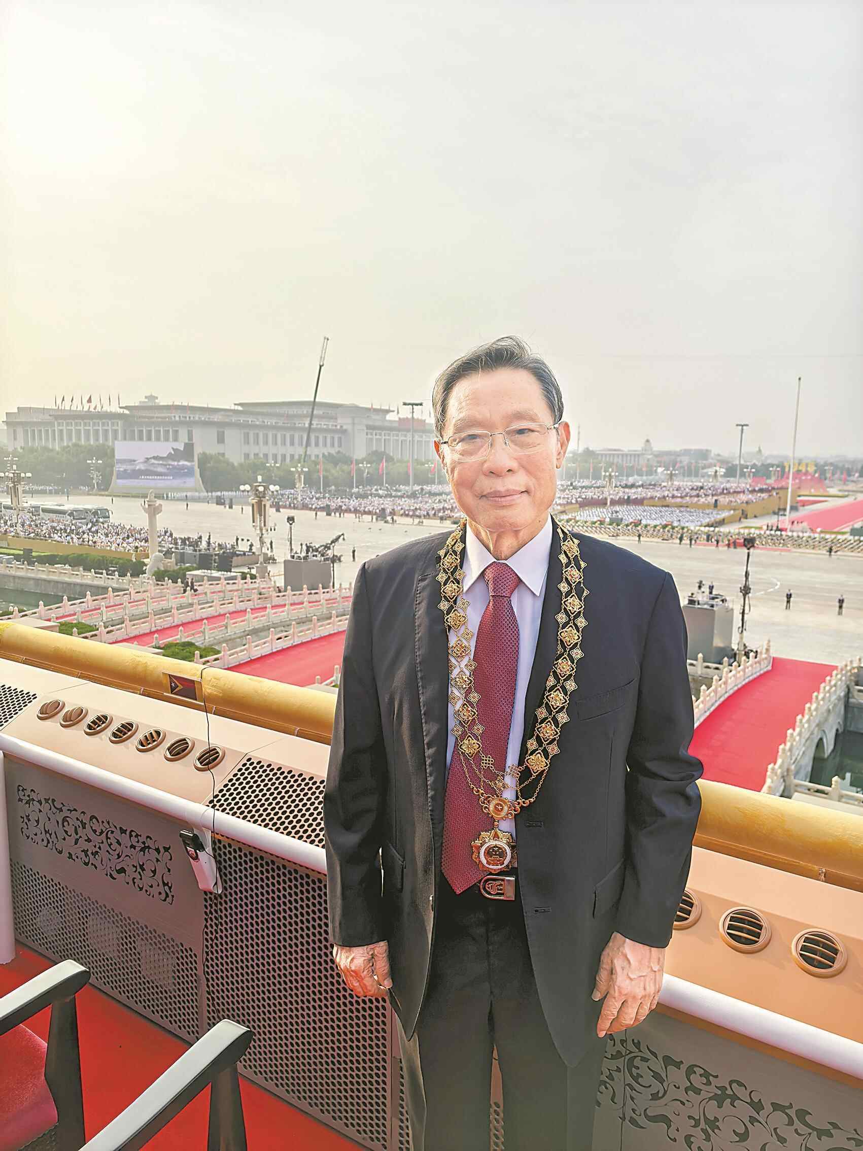 9月3日上午,在纪念中国人民抗日战争暨世界反法西斯战争胜利80周年大会上,90岁高龄的钟南山院士佩戴着“共和国勋章”出现在观礼台上。“我的心情非常兴奋!”活动结束后,钟南山院士接受了羊城晚报独家采访。