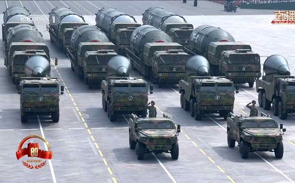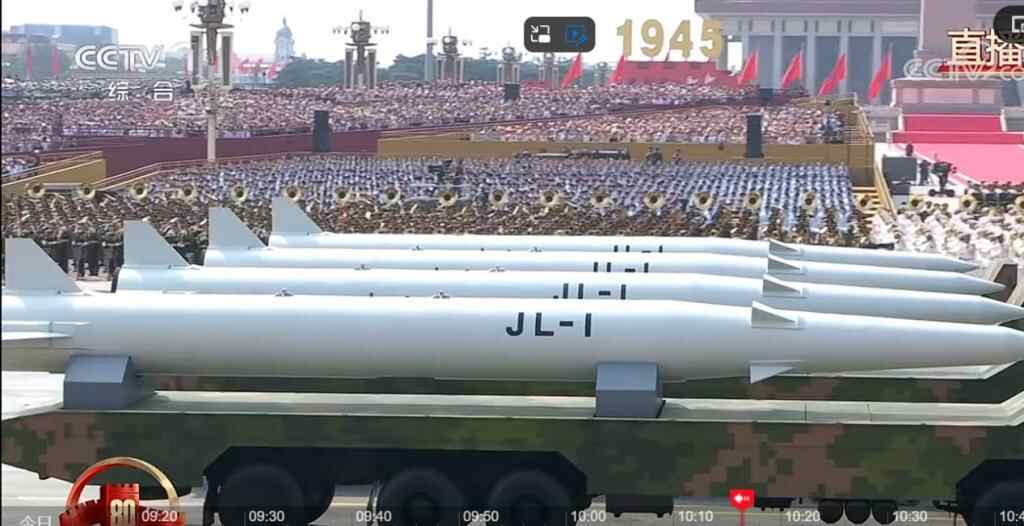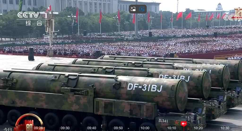 根据新华社报道,受阅的“惊雷-1”空基远程导弹、“巨浪-3”潜射洲际导弹、“东风-61”陆基洲际导弹、“东风-31”新型陆基洲际导弹,首次集中展示我军陆、海、空基“三位一体”战略核力量,是维护国家主权、捍卫民族尊严的战略“王牌”。