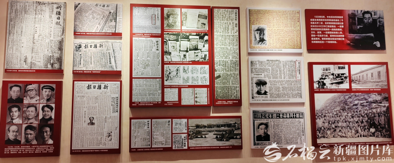 新疆日报报史馆“红色基因 一脉相承”展区,展出了抗战时期《新疆日报》刊登的共产党员及进步人士的文章。石榴云/新疆日报记者 贾春霞摄