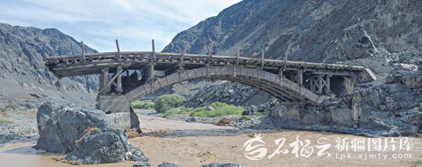 位于乌鲁木齐市达坂城区后沟沟口的达坂城木拱桥。这是国际援华交通线上的一座重要桥梁。新疆图片库提供