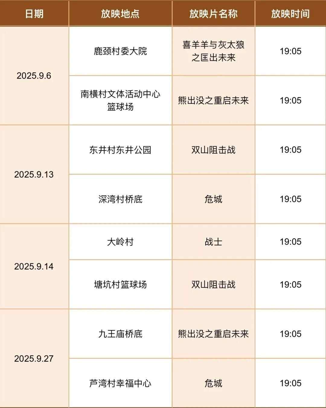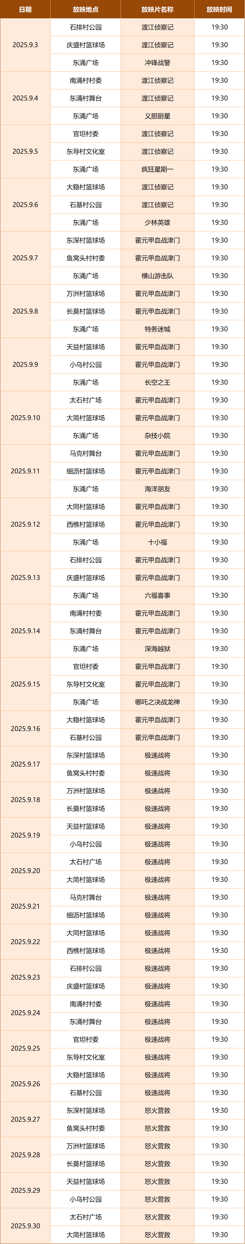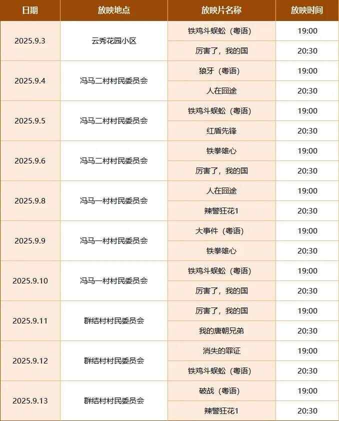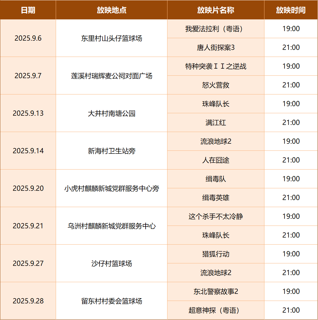 东涌镇9月数字电影放映安排表
