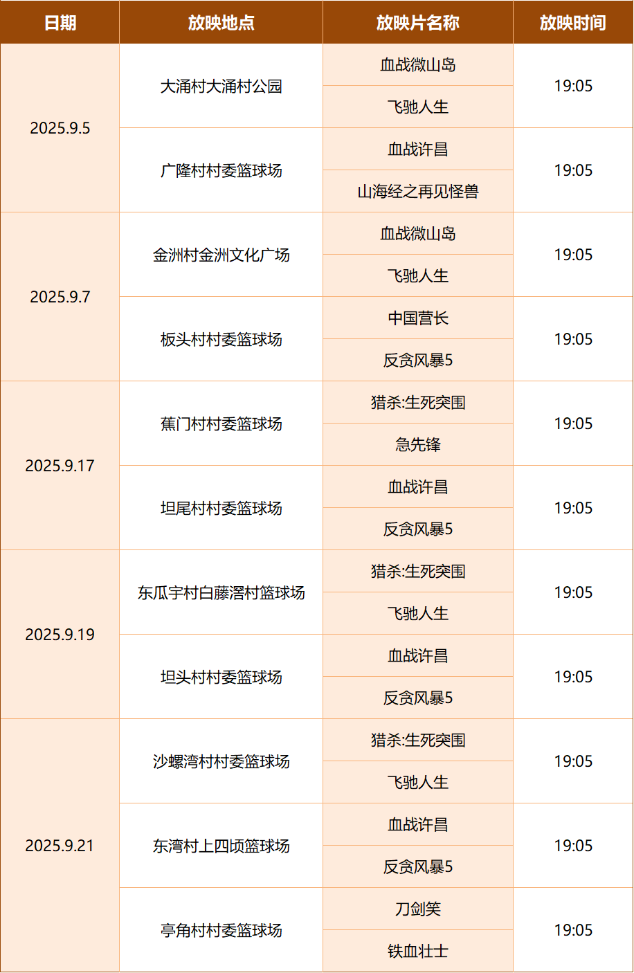 农村数字电影放映活动计划表
