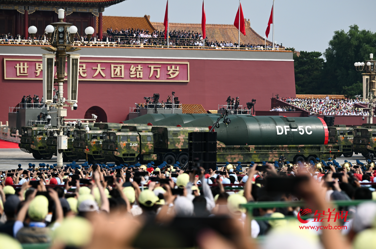 第一次看阅兵的我,现场有很多个失语和泪目的瞬间。比如军乐团奏响《松花江上》《保卫黄河》;比如“东风-5C”液体洲际战略核导弹,打击范围覆盖全球;比如阅兵结束后漫天飞舞的和平鸽;还有中国人民抗日战争纪念馆那面5098照片墙......