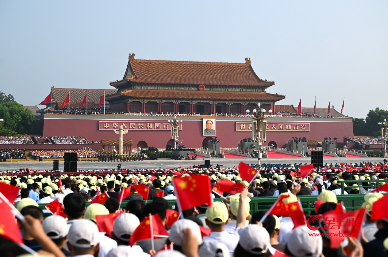 烈日当空,阳光刺眼,但每个人都目不转睛地盯着天安门前的受阅方队。
