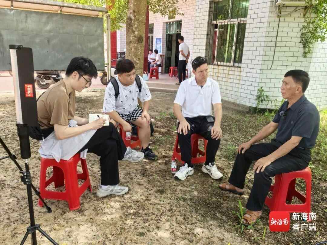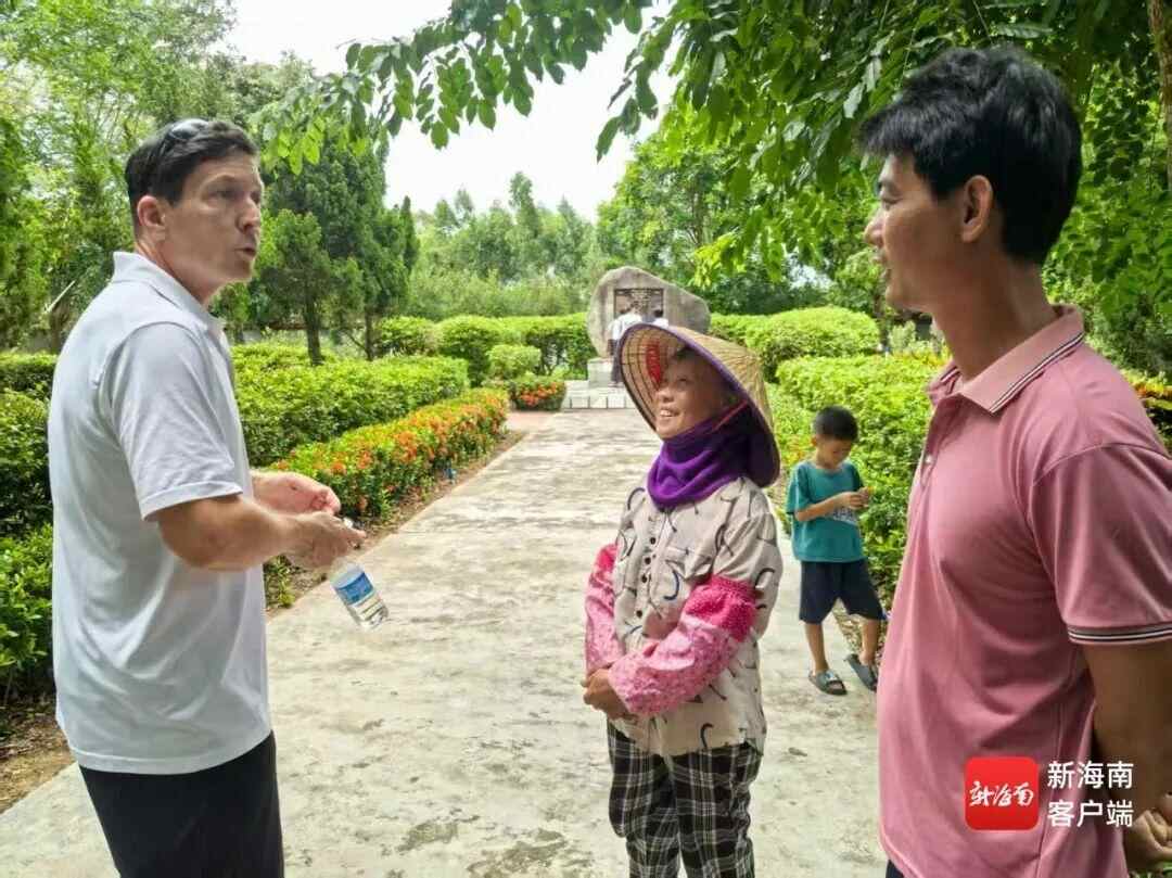 布兰登(右二)再回老欧村。记者 胡诚勇 摄