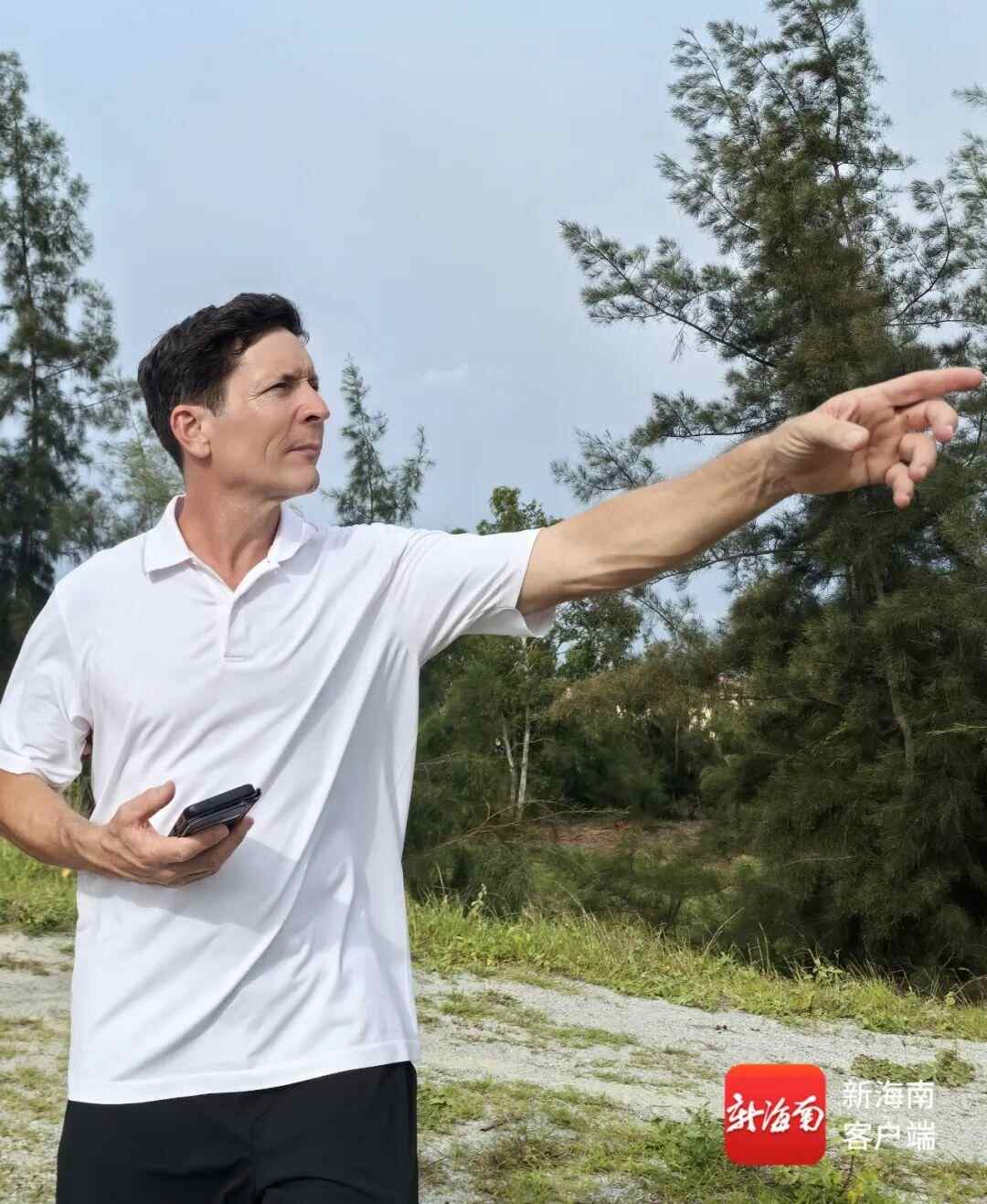 布兰登在东方八所鱼鳞洲寻访。记者 胡诚勇 摄