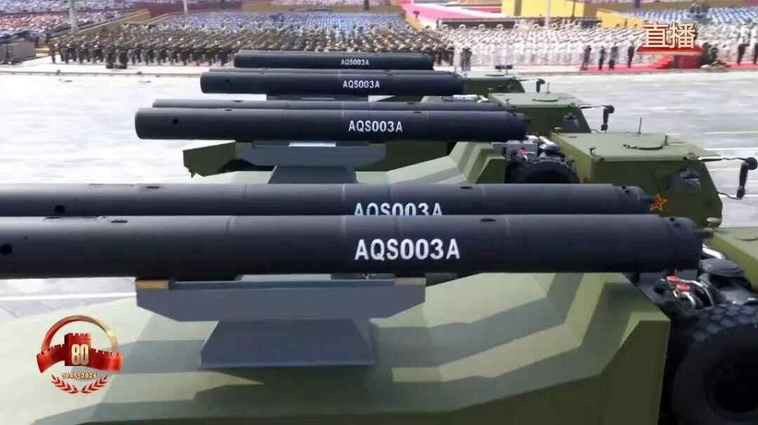 水下兵器方队,轻型鱼雷、助飞鱼雷、重型鱼雷,可打击水面舰艇、摧毁水下目标。新型特种水雷能够自主识别、自主攻击。是扼守要冲、奇袭制敌的“镇海神兵”。