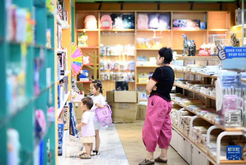 8月30日,家长带着孩子在江苏南京凤凰书城选购文具。