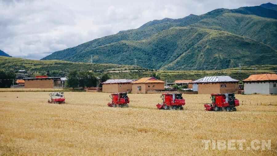 图为机械化青稞收割现场
