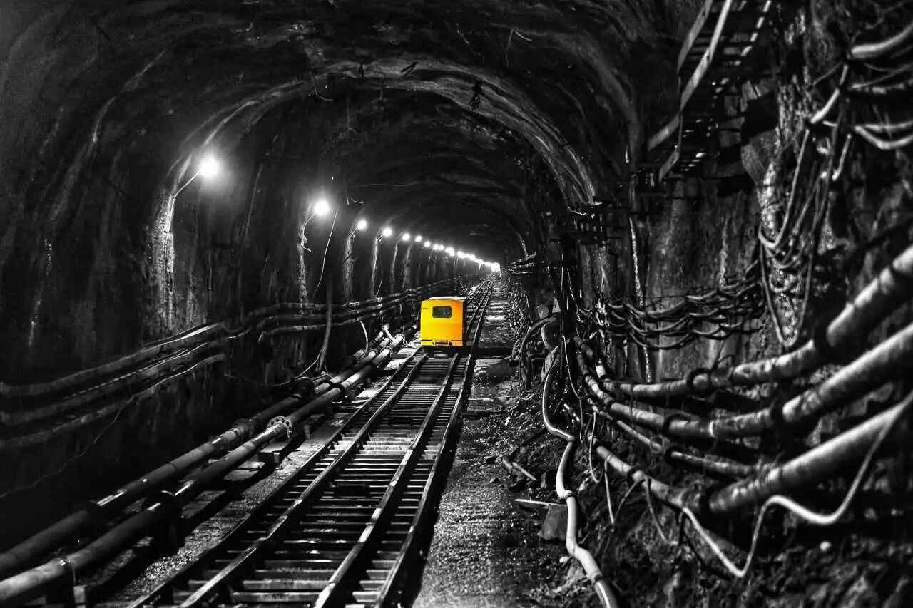 2015年的春天,江门中微子实验项目建设启动。科学家和工人们开始挖掘一条斜井(1341米)和一条竖井(616米),并向地下700米挺进。图为2022年2月,斜井人车行驶在建设中的斜井