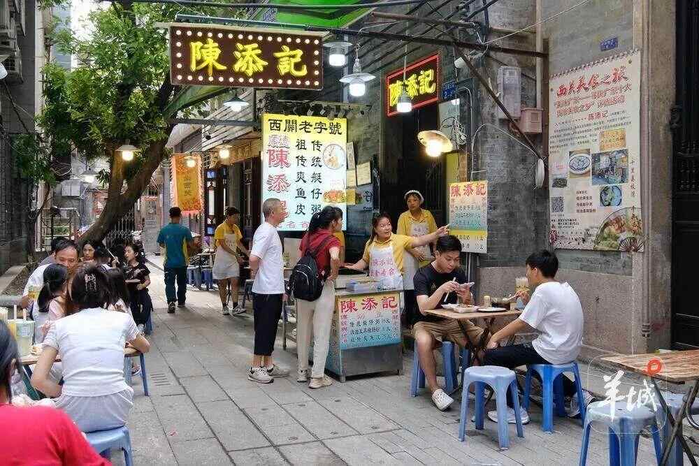 陈添记由佛山顺德人陈程添在1979年创立,是广州荔湾区第八批区级非遗代表性项目“西关凉拌鱼皮制作技艺”保护单位。陈氏家族自20世纪50年代末到西关谋生,足迹从荔湾区梯云路移到宝华路十五甫三巷,并在巷口设大排档;20世纪末入室经营,在巷内2号开档。46年来,陈添记负责人从陈程添、陈本明,传到被街坊亲切称为“华女”的“85后”陈映华手里。