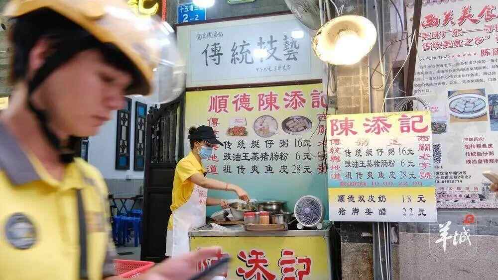 有食客还会点上店内的传统艇仔粥、豉油皇猪肠粉配鱼皮,一顿简餐便可饱腹。这三款出品是陈添记从大排档时期就传承下来的,现在依旧是主打。陈映华说:“坚持父辈留下的传统口味,也是创新的一种形式。”