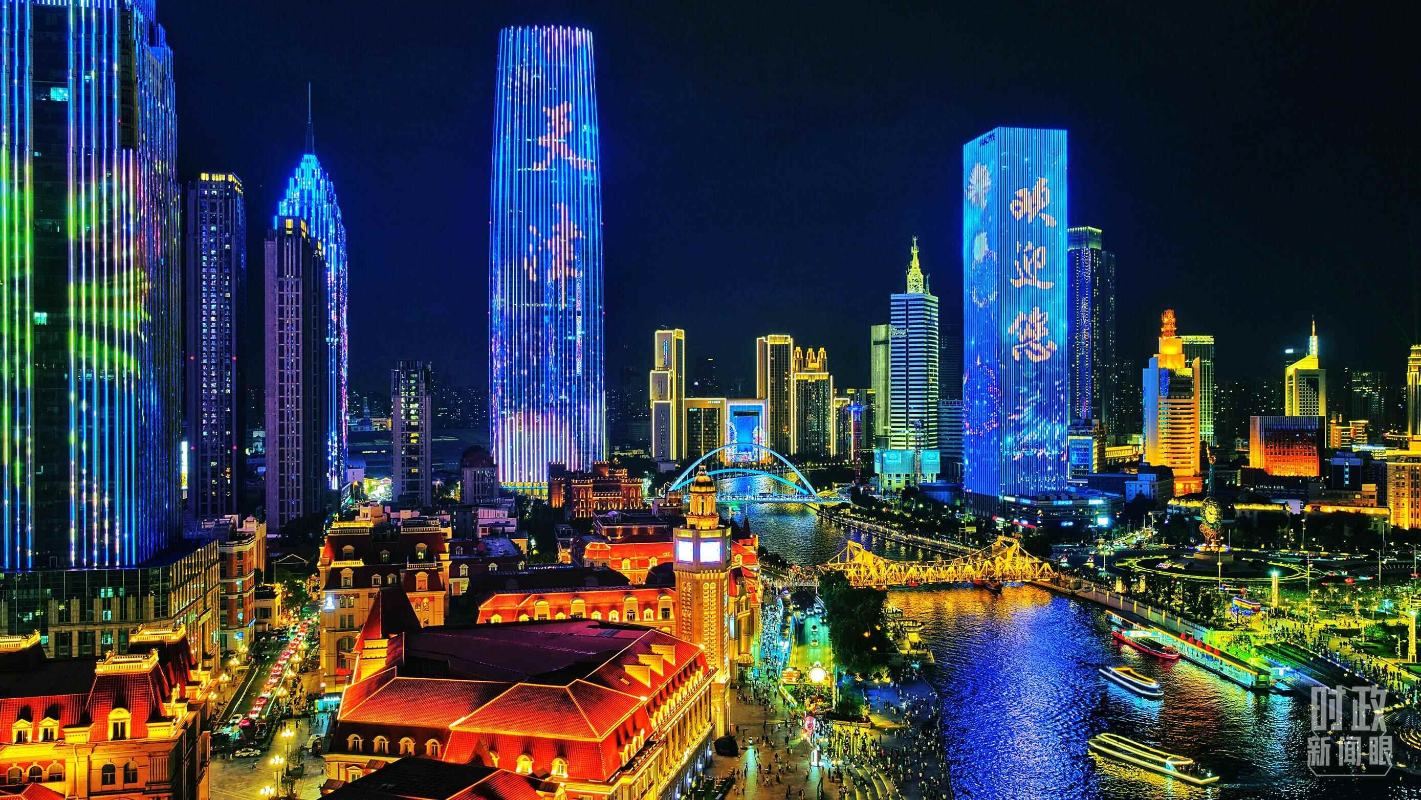 △天津海河上合峰会主题灯光秀。(视觉中国)